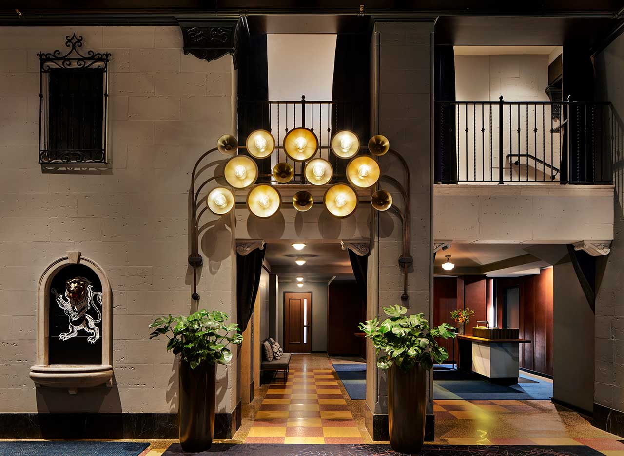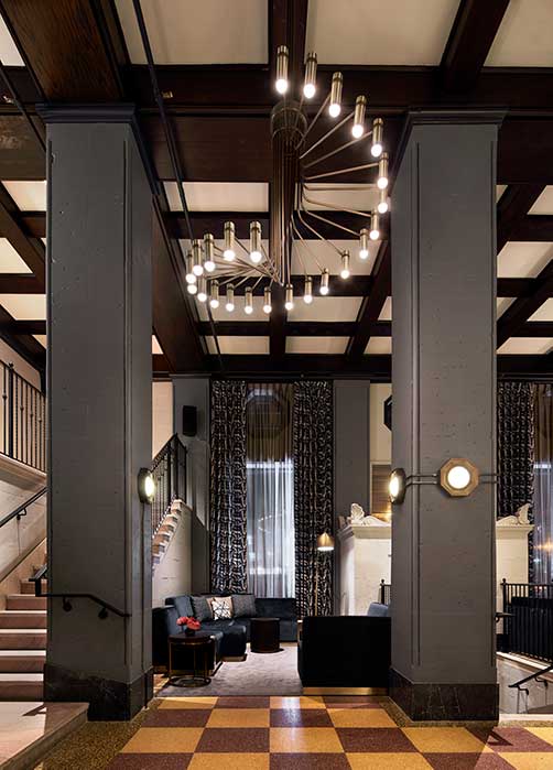 For Holston House, Sherry and the design team wanted to draw on Nashville’s musical heritage without being on the nose. This entryway light fixture, for example, was inspired by Phil Spector’s legendary Wall of Sound production technique. COURTESY OF STONEHILL TAYLOR.